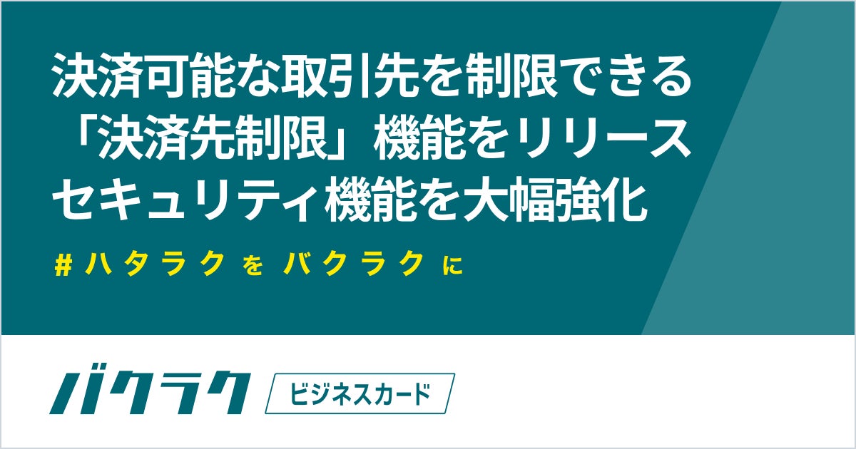すべての経済活動のデジタル化を目指す株式会社LayerXは、「バクラクビジネスカード」において、「決済先制限機能」をリリースしました。発行したカードごとに決済可能な取引先を制限することで不正利用や意図しない決済を防止でき、これまで以上に安全にバクラクビジネスカードをご利用いただけます。
