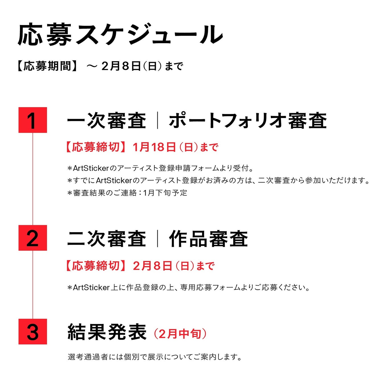 ※アーティスト登録が未完了の場合、一次審査は1月18日(日)までです。
