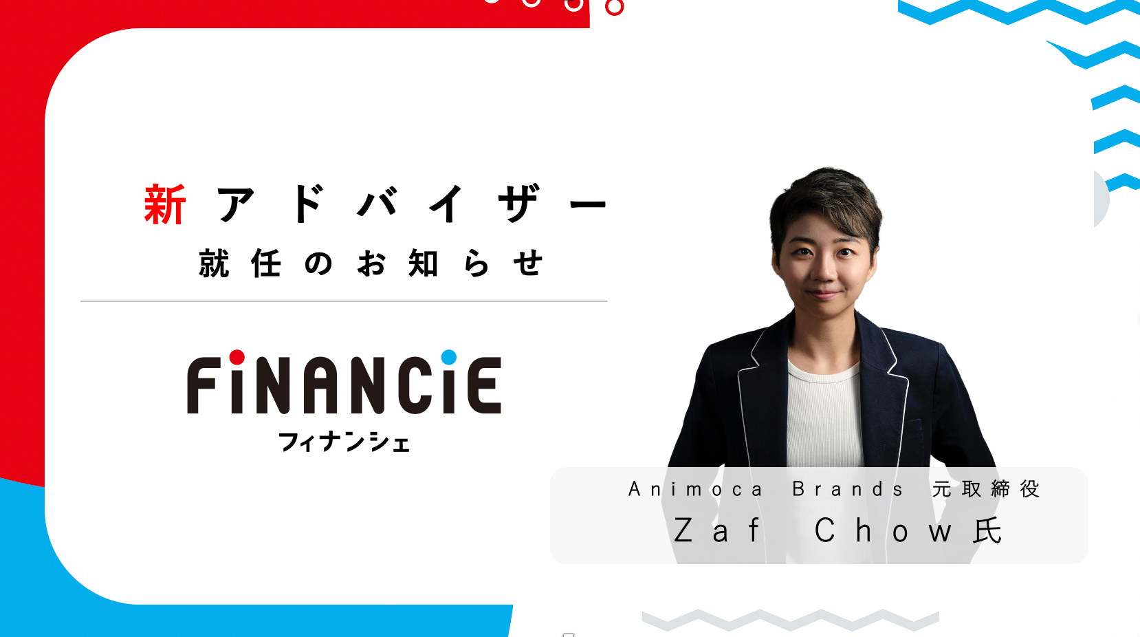 フィナンシェでは、Web3やデジタルエンターテイメントの領域において豊富な経験を持つZaf氏をアドバイザーに迎えることで、フィナンシェの海外展開や外部連携を促進し、FiNANCiEやFNCTによって創られる“コミュニティ主導”のクリエイターエコノミーをグローバルエコシステムへ拡張していくことを目指します。