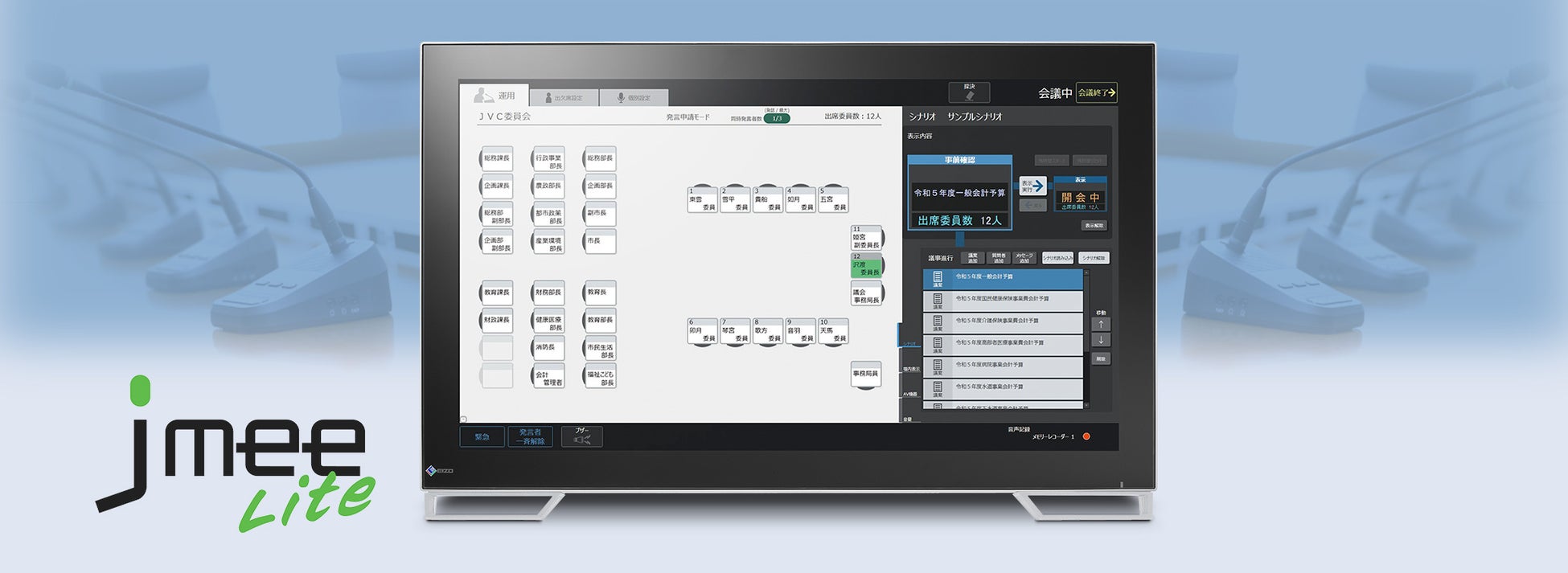 一方で、カメラシステムを導入していない比較的小規模な議会や委員会を運営する自治体からは、「本格的な会議システムは必要なく、マイク制御を簡略化するシステムを手軽に導入できないか」といった要望も寄せられていました。そこで今回、“jmee”の基本性能と操作性を継承しつつ、機能をマイク制御に限定した簡易版として、“jmee Lite(ジェイミーライト)”を企画・開発しました。