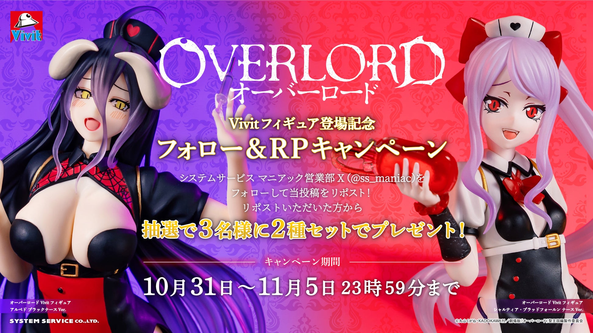 抽選で3名様に11月登場「オーバーロード Vivitフィギュア アルベド ブラックナースVer.、シャルティア・ブラッドフォールン ナースVer.」を2種セットでプレゼント。