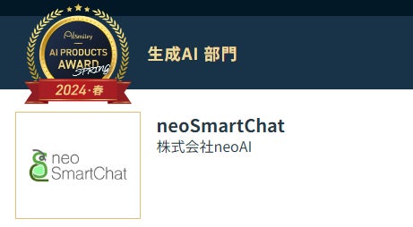 neoSmartChatは、株式会社neoAIが提供する生成AI活用製品となります。 運用は簡単で、社内チャットボットなどの各業務に最適化した機能を追加が出来ます。企業の課題解決に必要な提供メニューを備えている点が評価され選出されました。