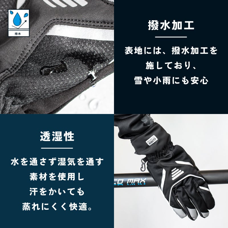 保温・防風・撥水に優れた防寒性の高い冬用サイクルグローブです。