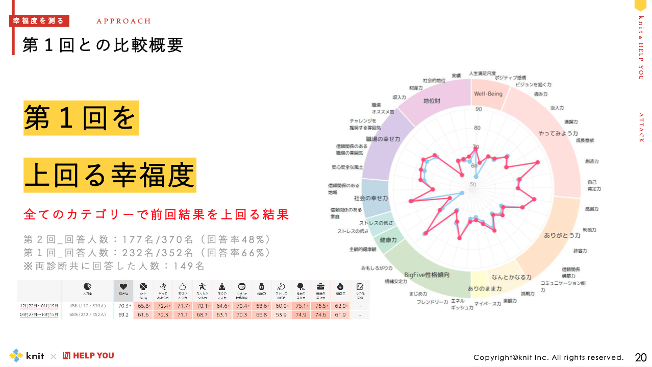 第1回と比較して全体的に「幸福度」が上昇していることが判明、今後も組織のかたちをアップデートしていきます