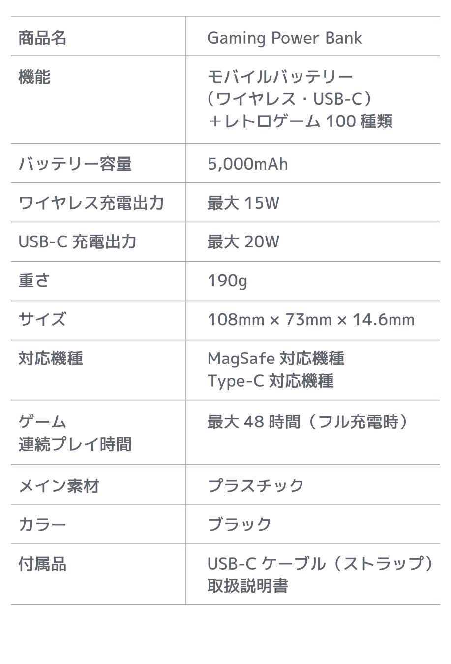 モバイルバッテリー&レトロゲーム100種内蔵のデュアル機能設計