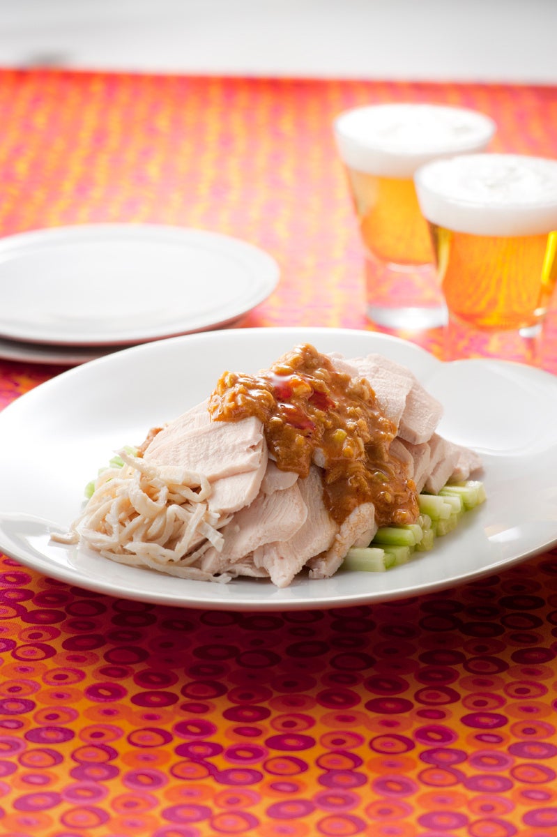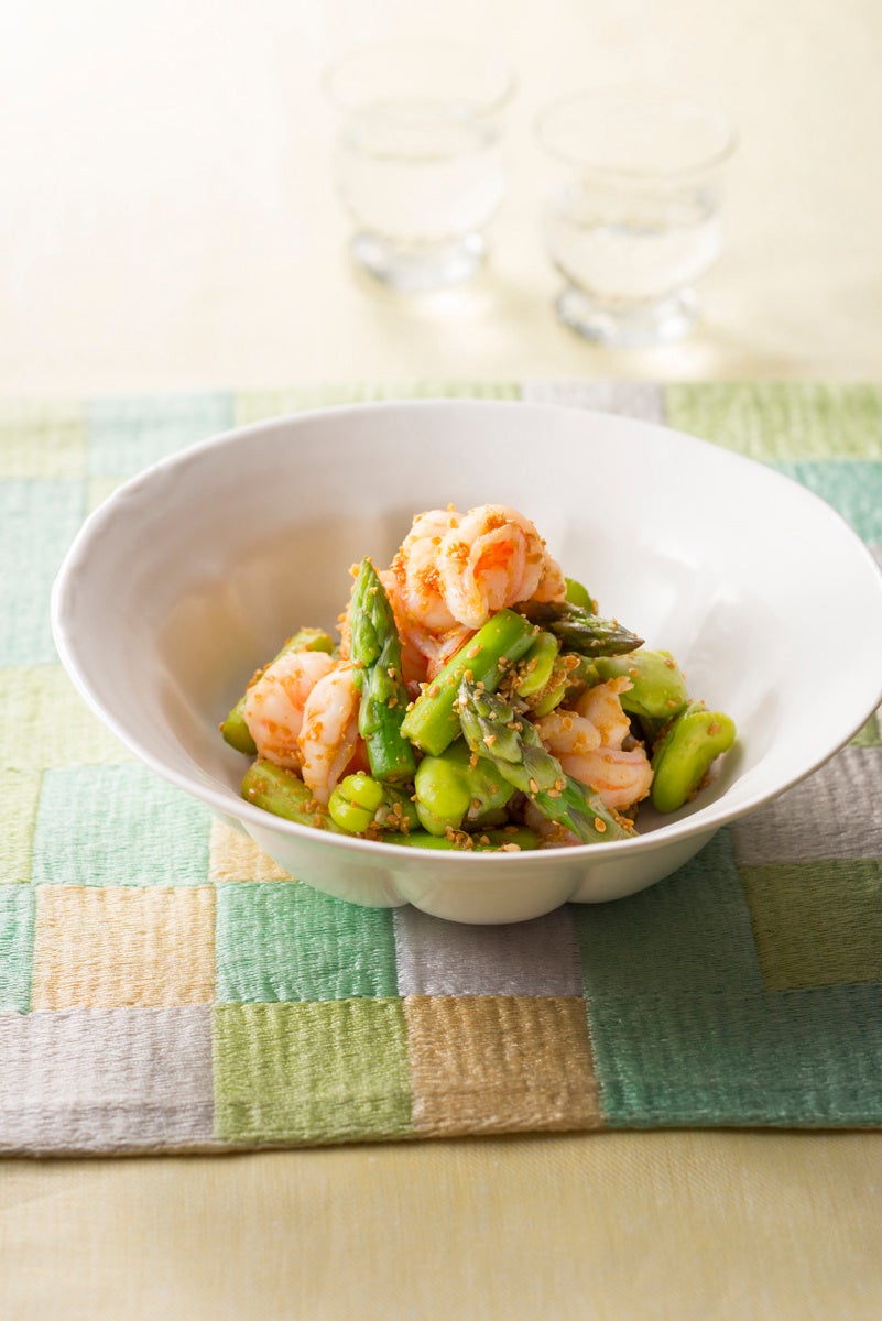 棒々鶏、じゃがいもとチーズのおやき、アスパラガスのごま酢和え 他