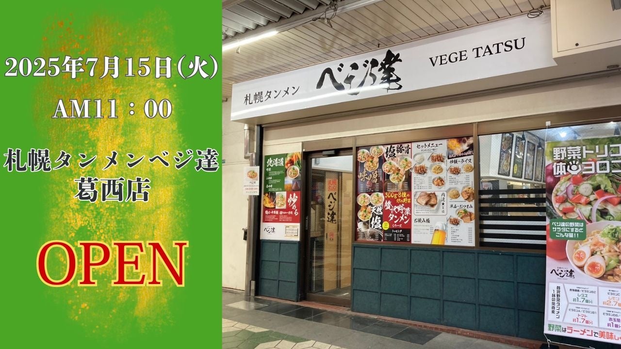 KOZOホールディングスの子会社であるアスラポート株式会社どさん子事業部は、東京メトロ東西線葛西駅にて『札幌タンメン ベジ達 葛西店』を2025年7月15日(火)グランドオープンいたします。