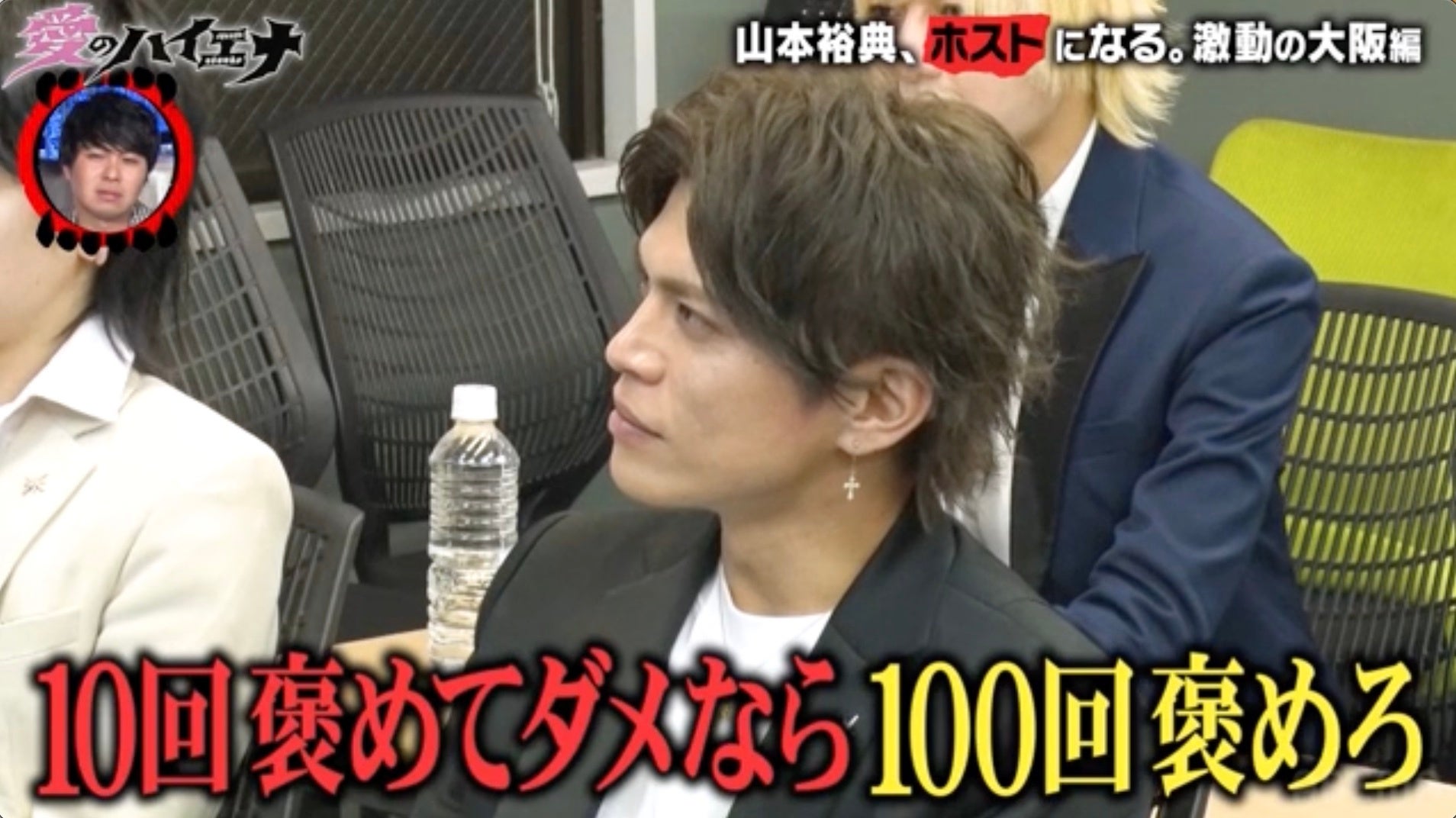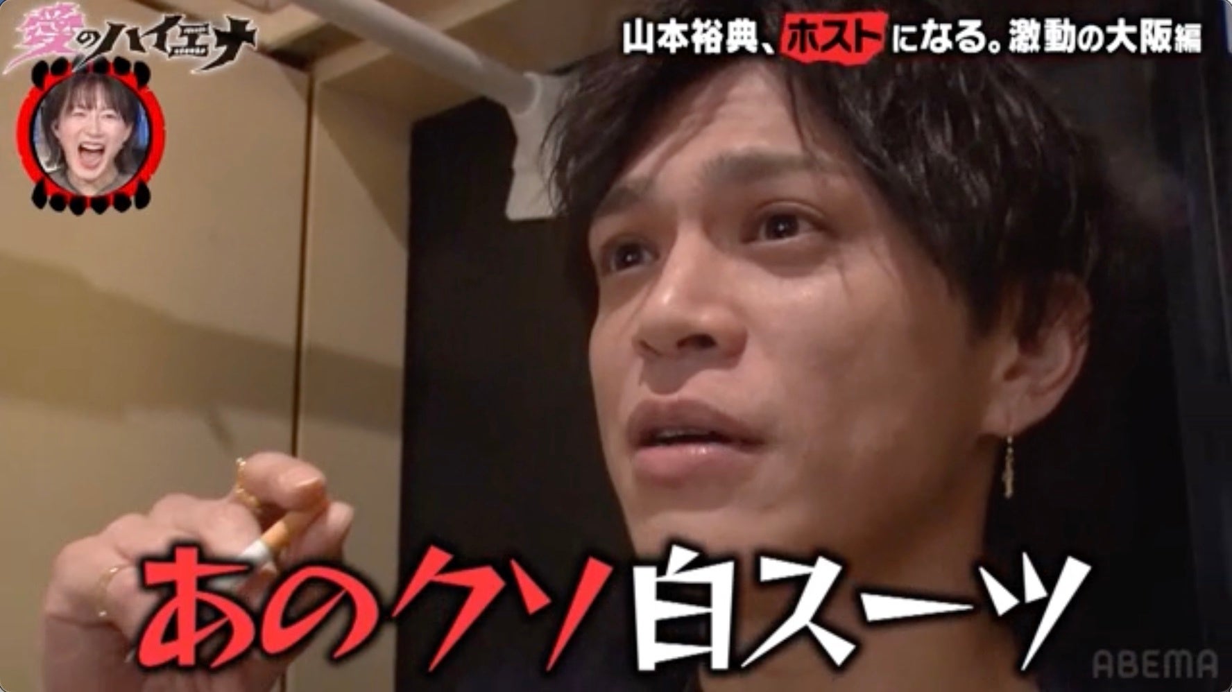 反響を呼んだのは、「山本裕典、ホストになる。~大阪編~」での一幕です。「山本裕典、ホストになる。~大阪編~」は、俳優・山本裕典さんがホストクラブに体験入店していくら稼げるかを検証、その様子に完全密着する『愛のハイエナ』シリーズの大人気企画のひとつ。舞台を歌舞伎町から大阪に移した山本さんが、大阪のホストクラブでの初日出勤にて“大阪ホストの洗礼”を浴びており、「歌舞伎で売れへんかったから、大阪で売れると思ったんですか?山本裕典、東京に送り返します」と大阪のホストに煽られ、山本さんは「なんなん?あの白スーツ。あの態度!?クソ腹立つわ」と怒りをあらわに。ホストクラブ出勤中になにかがあると、必ず喫煙所で思いの丈を吐き出す“名シーン”に、視聴者からは「山本裕典のこういうとこまじで好き」「なにか言われた後のバックルームのシーン毎回好きすぎる」「本当にこの企画好き」の声が寄せられました。