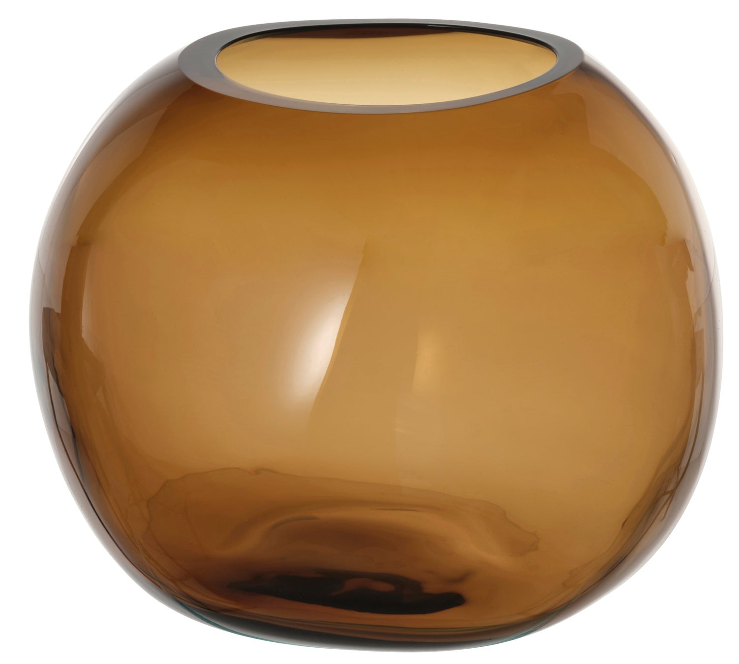 熟練した吹きガラス職人によって手作業で作られた、単独でオブジェとして飾ることもでき、アート作品にもなる花瓶。不規則でオーガニックな形状と、深みのあるブラウンカラーが視線を引き付けます。