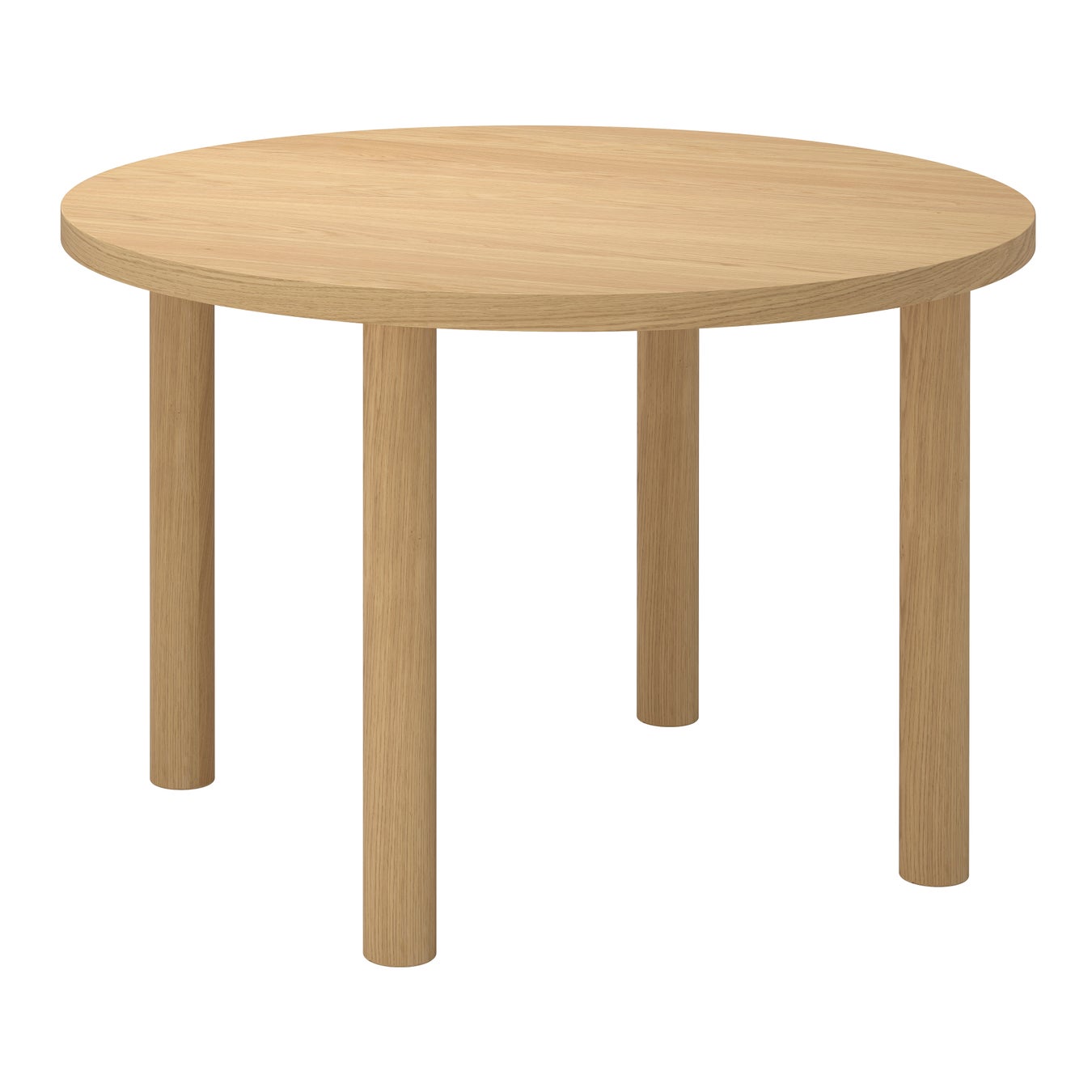 エレガントで耐久性があり、組み立てが簡単な円形ダイニングテーブル。高品質なオーク材突き板をクリアアクリルラッカーで仕上げているので、優れた耐久性と、洗練されたナチュラルな魅力があり、機能性と美しさの両立を実現し、どのダイニングスペースに置いても美しくて長持ちするセンターピースになります。各脚を固定具1つで効率よくシンプルに取り付けられるのもポイントです。