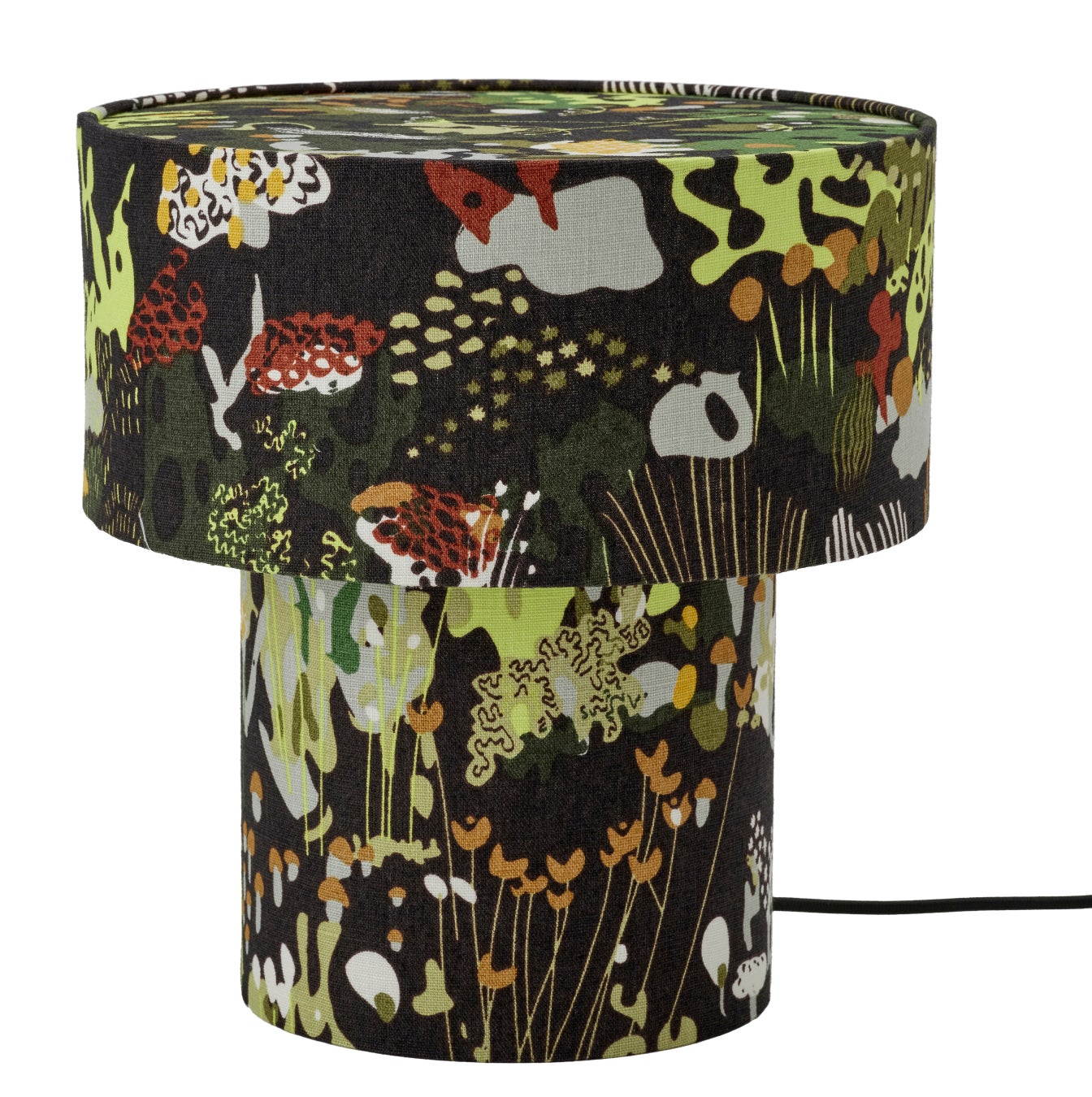 おとぎの森へといざなうストックホルム周辺の自然をインスピレーションにした葉とマッシュルームの生き生きとした模様と、家の中に温かみのある心地よい雰囲気をつくる明るいイエローで目を引くテーブルランプ。どちらのシェードもリネン100%の生地でできています。
