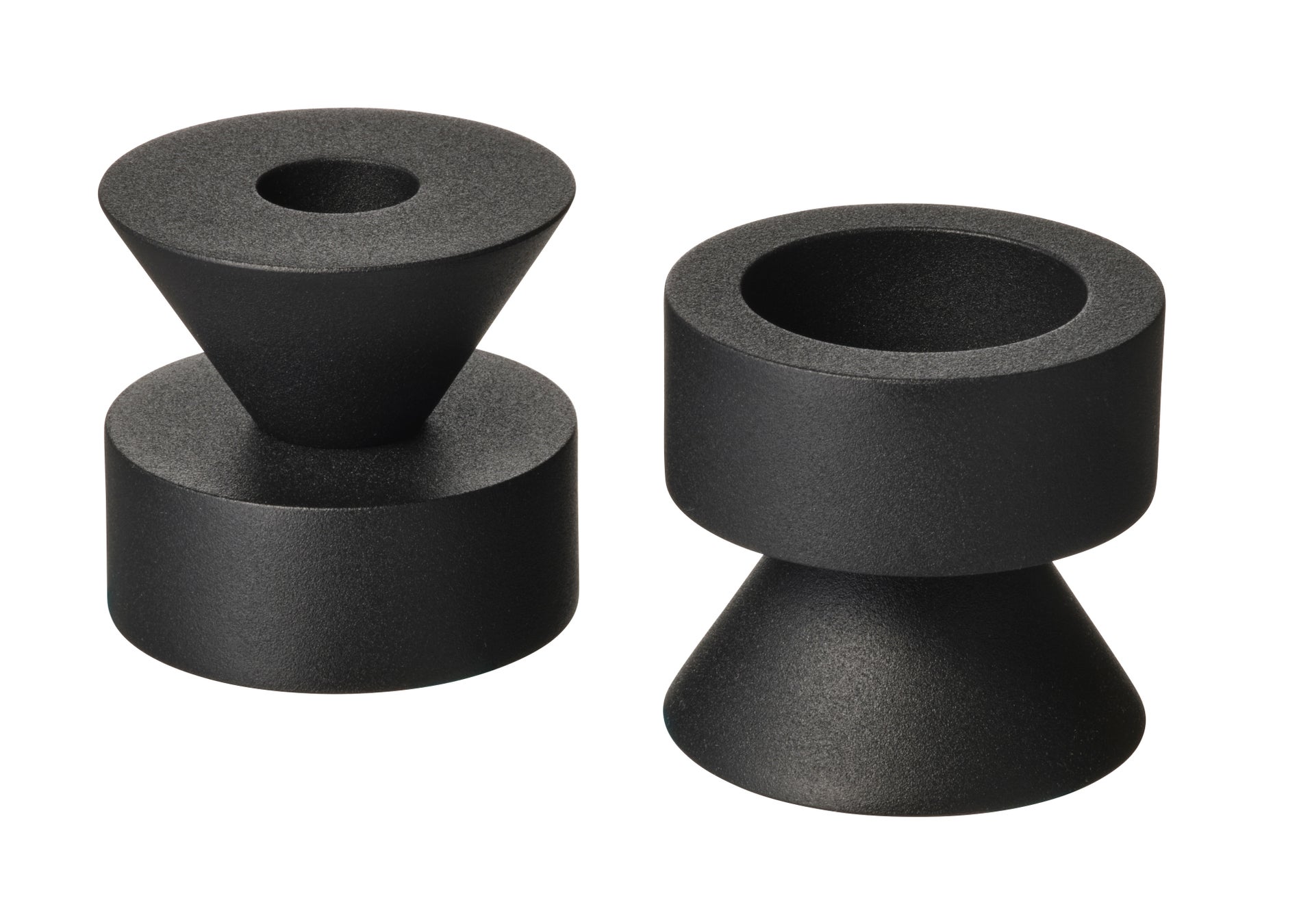 無垢の金属製でどっしりとした頑丈なキャンドルホルダー。1台2役で、ティーライトキャンドルと背の高いキャンドルを簡単に切り替えられます。