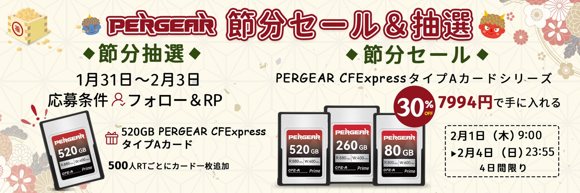 【節分限定セール&キャンペン】PERGEAR CFExpress Type Aカードを7994円で手に入れる!