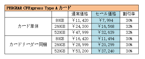 PERGEAR CFExpress Type Aカードシリーズは30%OFF実施!