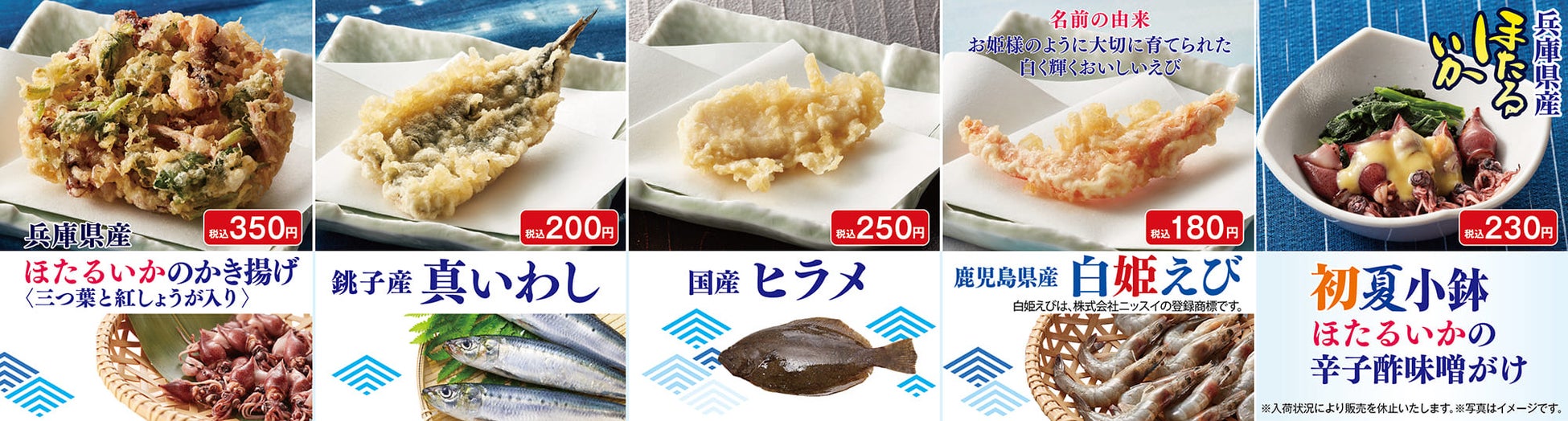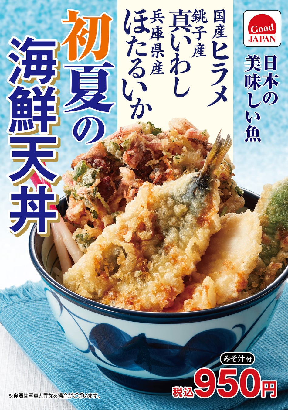 天丼てんや 初夏限定メニューを4月25日(木)から販売開始!銚子産真いわし・兵庫県産ほたるいか・国産ヒラメの『初夏の海鮮天丼』と北海道産肉厚帆立・天然大海老・活〆穴子の豪華な『ご馳走天丼』登場!