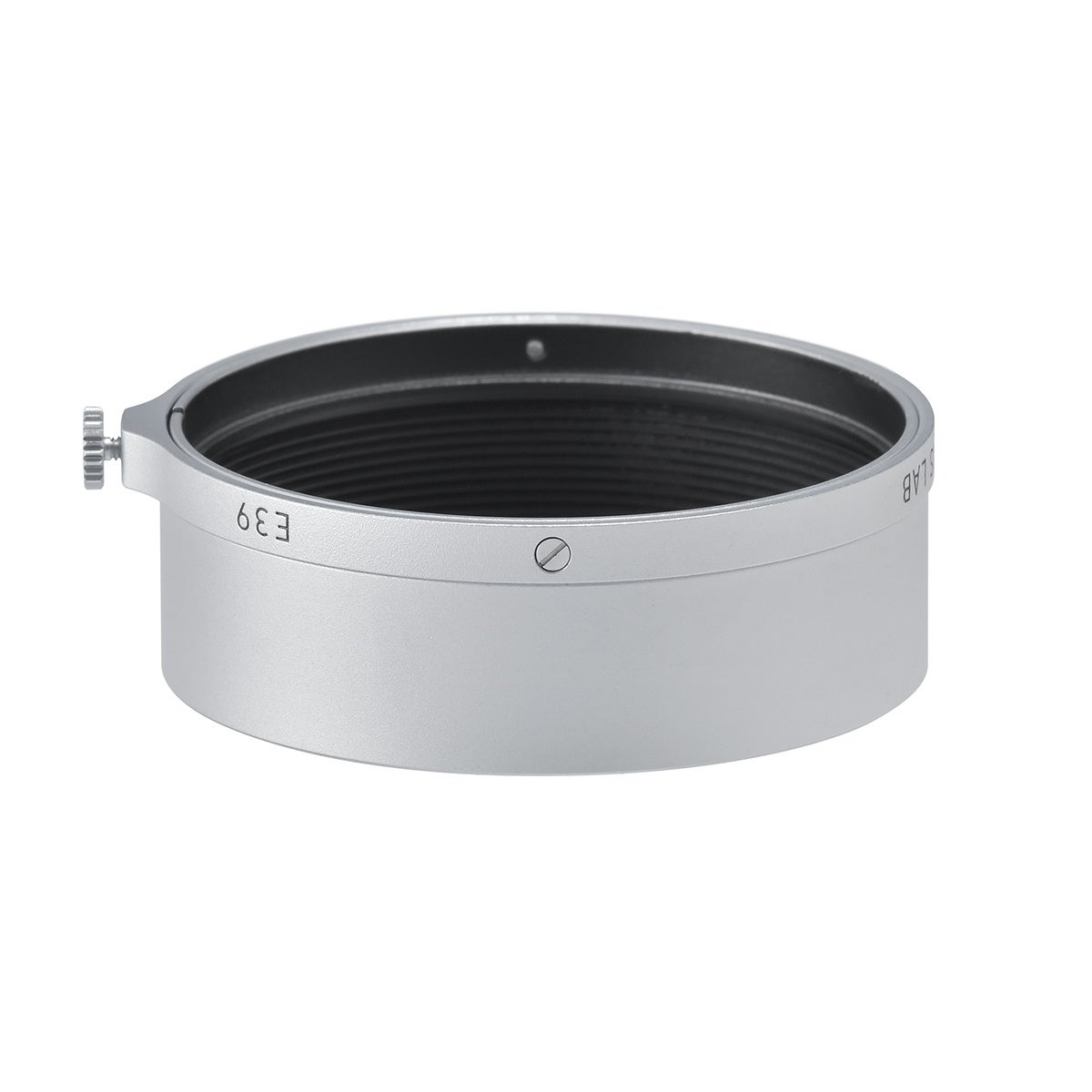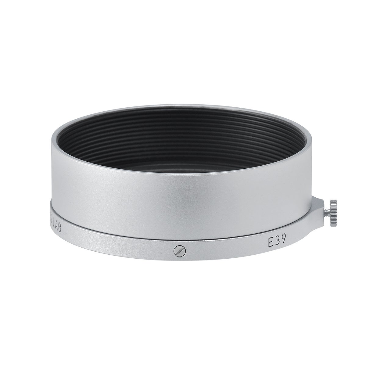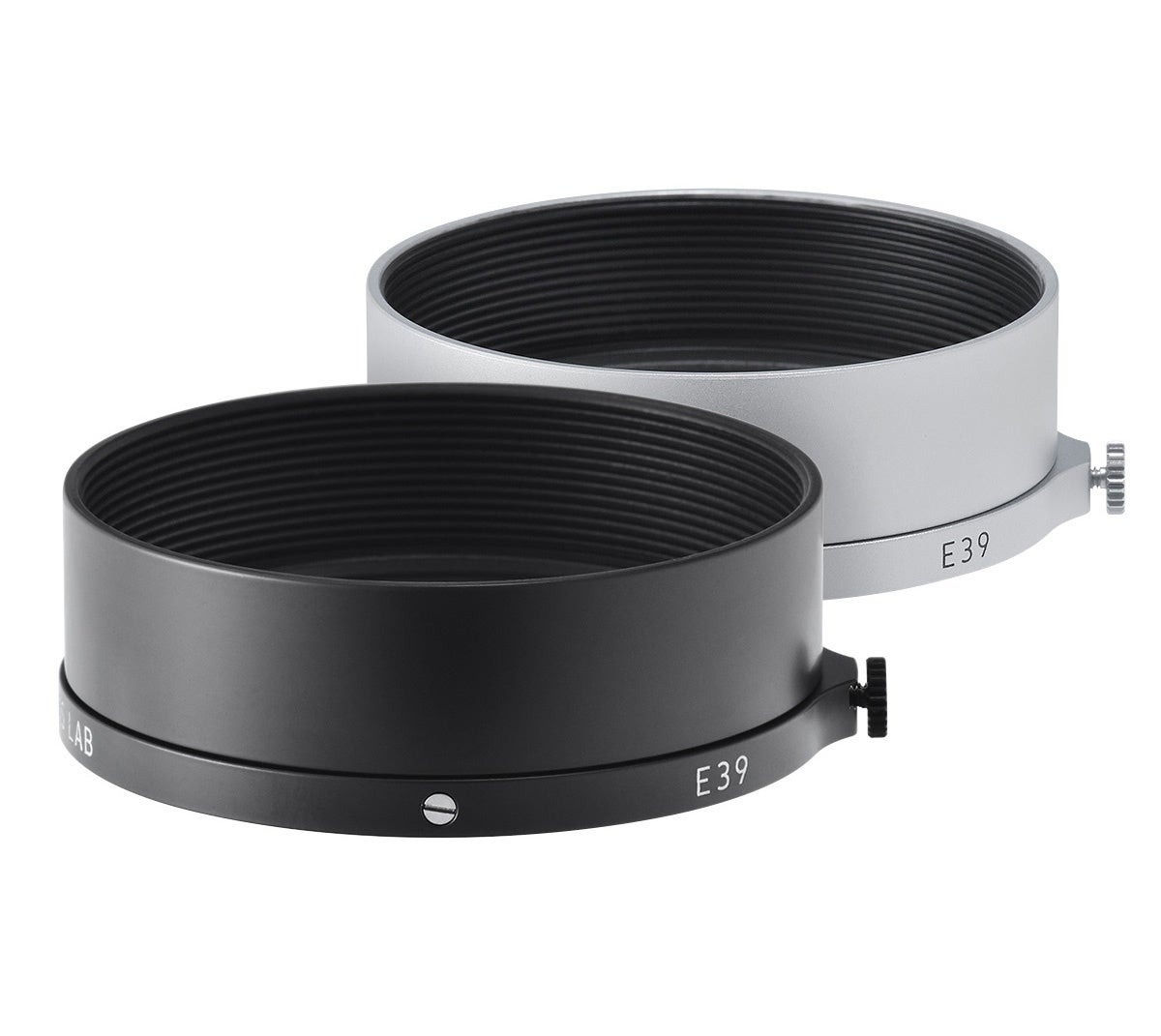 金属製で質感のよい小型レンズフードです。レンズのデザインを損なわないスマートな形状を採用、取り付け方法は、レンズ先端にはめてネジで固定する”かぶせ式”となります。L-E39-Aは、LIGHT LENS LAB LTM 35mm f/2 Collapsible(沈胴式)に付属するフードです。