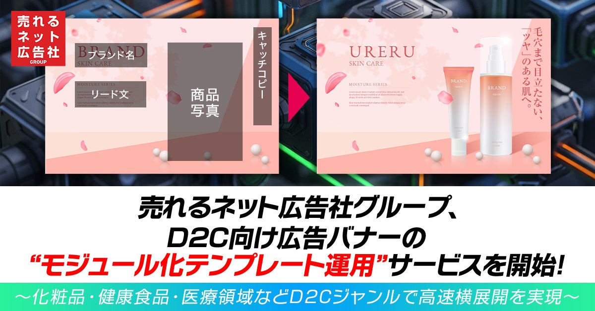 売れるネット広告社グループ、D2C向け広告バナーの“モジュール化テンプレート運用”サービスを開始!~化粧品・健康食品・医療領域などD2Cジャンルで高速横展開を実現~