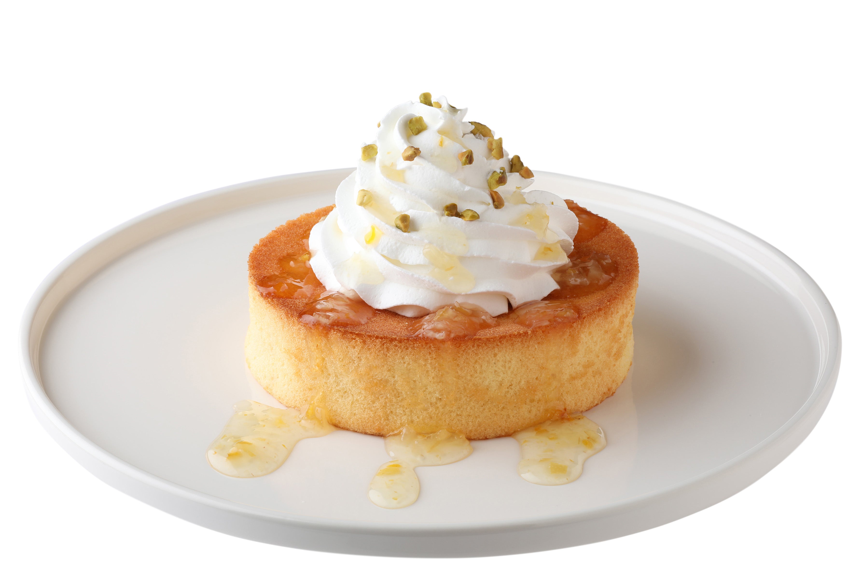 しっとり・ふんわり食感のスフレパンケーキに、北海道バターとホイップクリームを乗せ、3種類の柑橘とはちみつを使用したはちみつレモンソース※をトッピングしました。ソースにはダイスやミンチにした「せとだエコレモン🄬」の果皮を中心に九州産の「甘夏」と「不知火」を使用しており、つぶつぶとした果皮の食感が楽しめます。また、パンケーキは、スフレ特有のふんわりとした口当たりをお楽しみいただけるように焼き方にこだわりました。有塩バターの塩味と甘酸っぱいはちみつレモンソースがケーキの甘さと程よくマッチします。はちみつレモンソースの透き通った黄色が夏らしく、見た目も楽しめる商品です。