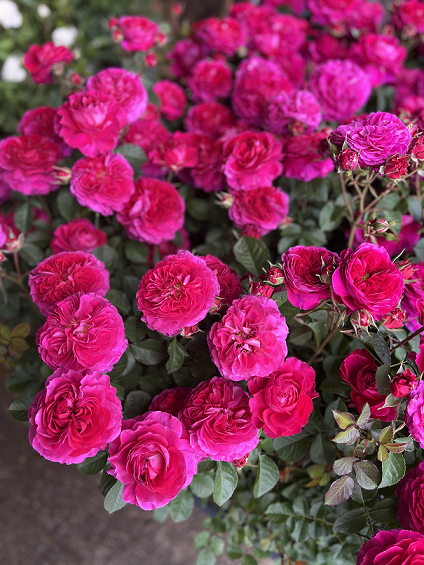 ・荘厳さと気品に満ちあふれフラットなロゼット咲きの可憐な花が集まって、まるで一つの大きな花のような印象