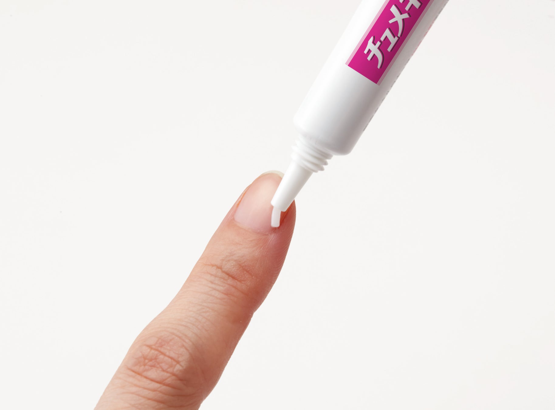 チューブの先端は、先細で患部にピンポイントに塗りやすい形状です。爪まわり以外にはみ出しにくく、塗布した直後から指先を使用することができます。リップクリームサイズでポーチに入れやすく、いつでも手軽に使用できます。(幅約2cm×長さ約10cm)
