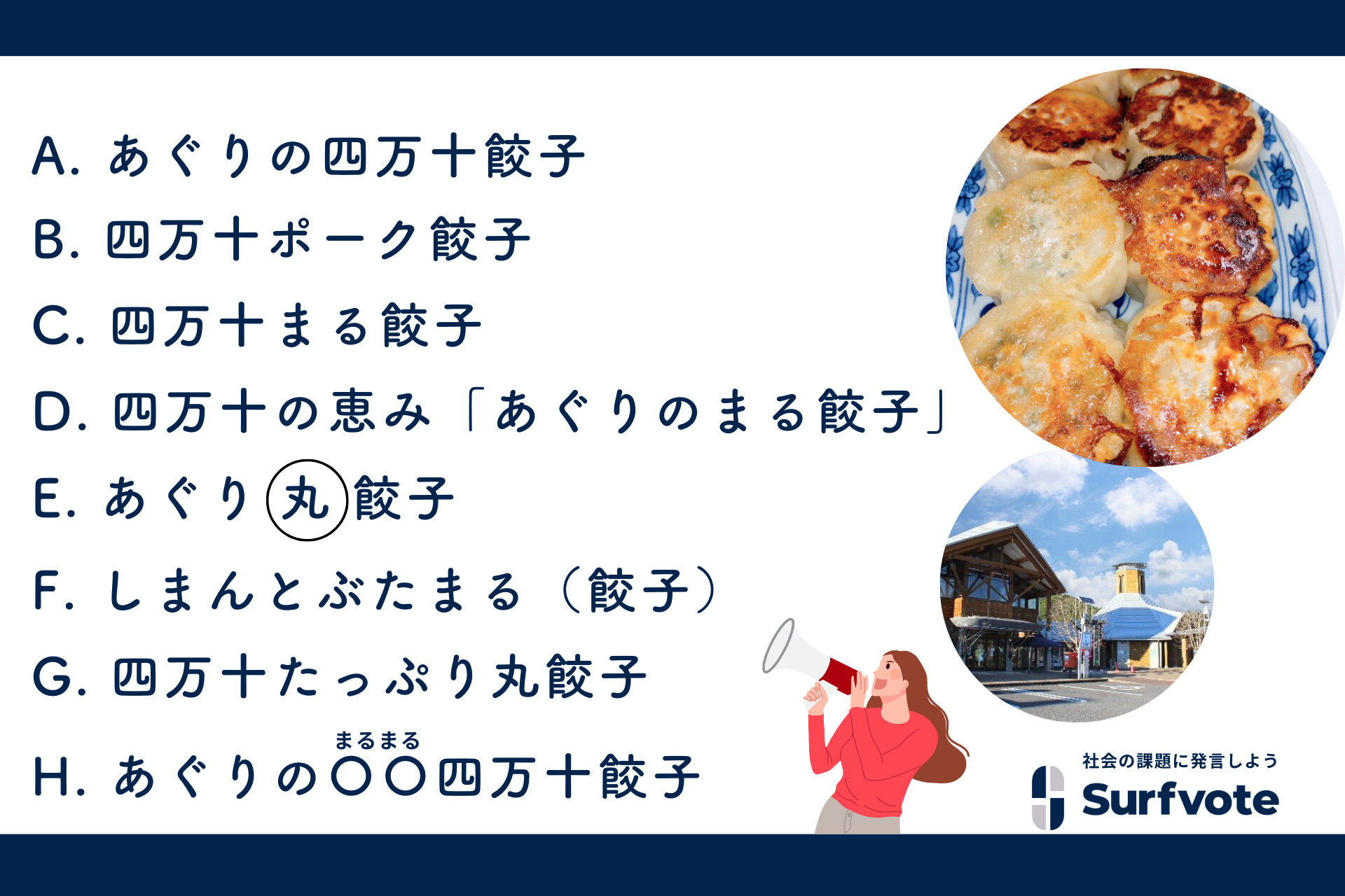 四万十町の活性化のため、四万十町の恵みたっぷりの餃子をリブランディングすべく、餃子のネーミングを募集します。https://surfvote.com/issues/isrgk220x951
