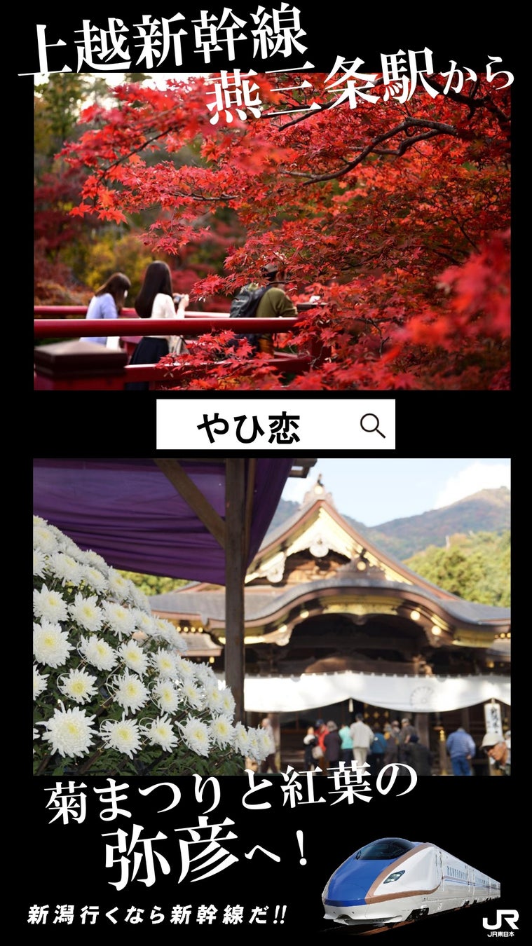 紅葉の越後湯沢エリア、菊まつりと紅葉の弥彦エリアを中心に、新潟県のスポットを首都圏の一部駅のデジタルサイネージにて発信中!