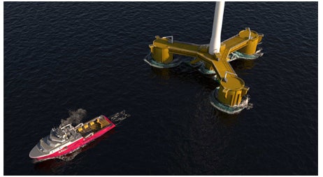 <浮体式洋上風力発電設備と曳航・係留作業船のイメージ図>