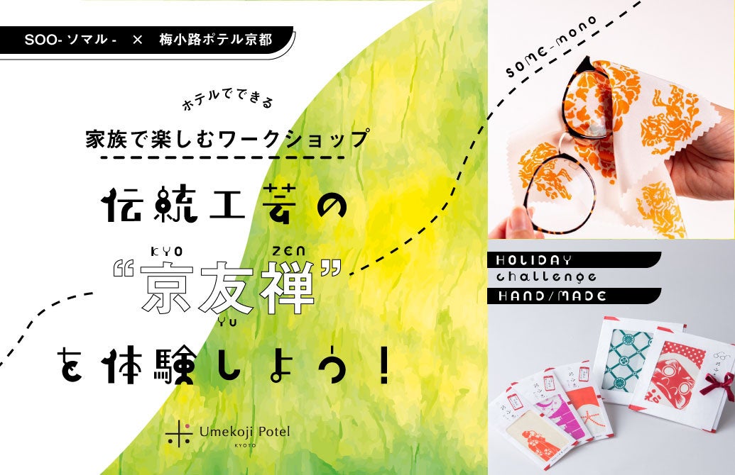 ポテルでは夏休み期間内の8月26日(土)・27日(日)の2日間に、京友禅の染屋さんであるSOO-ソマル-から学ぶ、京友禅の型染体験ワークショップをご家族で楽しめるイベントを2FのParkで開催いたします。