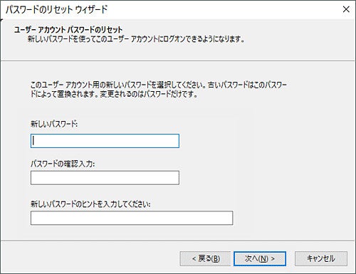 Step5:「パスワードのリセット ウィザードの開始」画面になります。[次へ]をクリックして続行します。