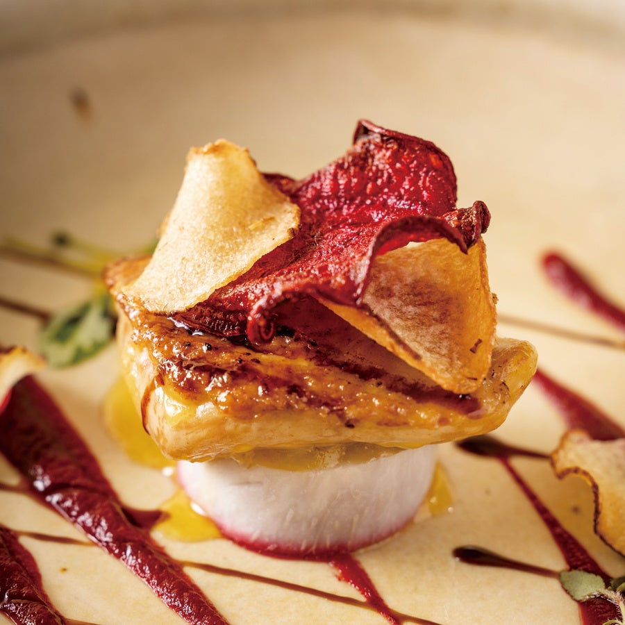 アミューズブーシュ 金時人参のムースと雲丹 コンソメジュレ 冷前菜 聖護院かぶのブランマンジェとキャヴィア カリフラワーライスのサラダを添えて 温前菜 フォアグラのポワレと海老芋 パスタ 丹波あじわいどりのラビオリ オマール海老を添えて アメリケーヌソース 魚料理 真鯛のカダイフと堀川ごぼう ゆずバターソース 肉料理 トリュフの香り デザート |