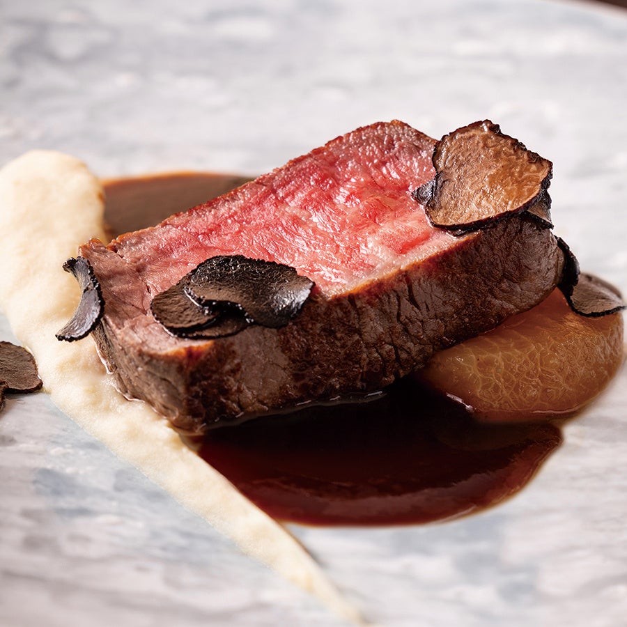 KIHARU Brasserieからお届けするクリスマス限定のご馳走は、京都の伝統野菜と上質な食材が織りなす、心満たされるディナーコースをご用意します。メインディッシュには、じっくりと焼き上げた黒毛和牛を。香り高いトリュフを使った濃厚なソースに聖護院大根で引き立てた豊かな味わいをお楽しみください。また、ほくほくとした海老芋と濃厚でクリーミーなファオグラに、バルサミコソースの酸味が絶妙に重なり合う一品や、風味豊かな丹波あじわいどりを包んだラビオリを、深い海の味わいが凝縮されたアメリケーヌソースで和え、オマール海老を添えた一品など、全7品をご堪能いただけます。