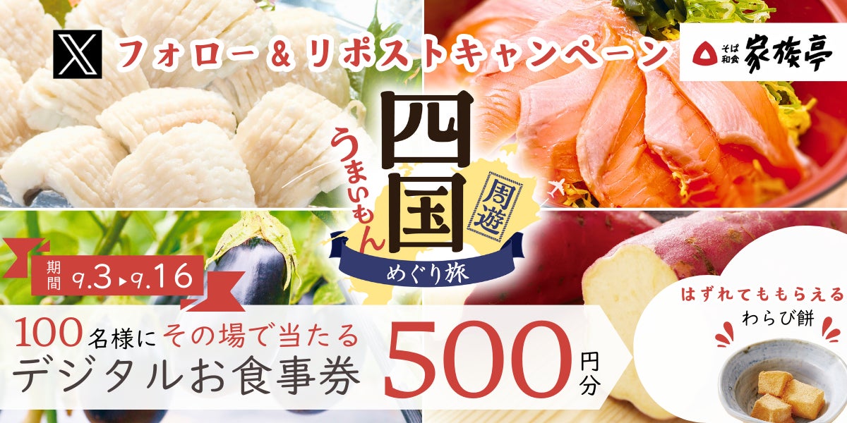 四国フェア開催を記念して、500円分のデジタル食事券が100名様にその場で当たる「Xフォロー&リポストキャンペーン」も同時開催いたします♪