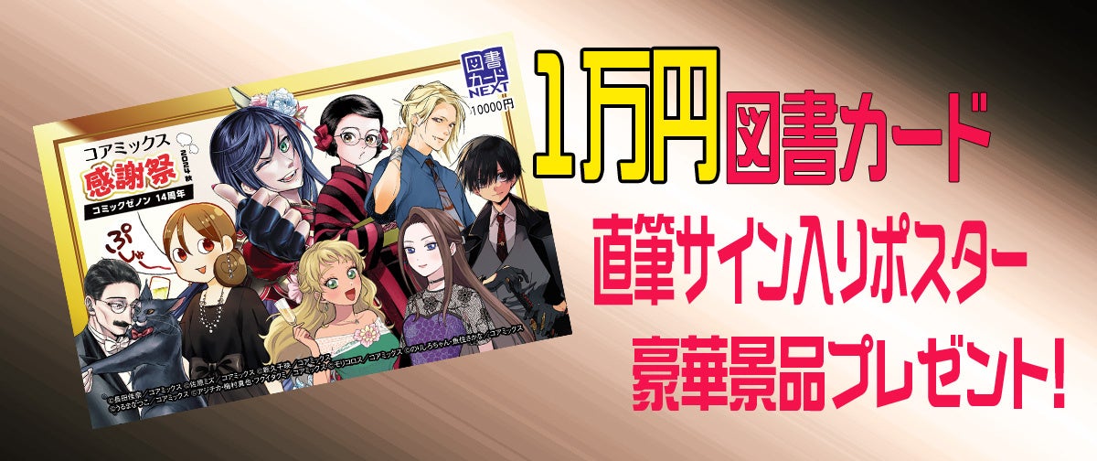 「コアミックス感謝祭2024」は、コミックゼノン14周年を記念した大型企画。書店フェアの他に電子書店で対象作品が無料&割引になる施策や、描き下ろしイラストを使用したグッズがゼノンショップで新発売されるなど様々な企画が目白押しとなっている。ぜひ特設サイトでチェックしてみよう。
