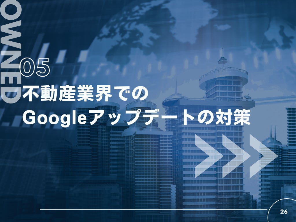 「不動産業界でのアップデートの影響」では、事例をもとにアップデートによる順位変動とその対策について解説します。アップデートの特徴や、不動産業界におけるSEO対策の重要ポイントにも注目しています。