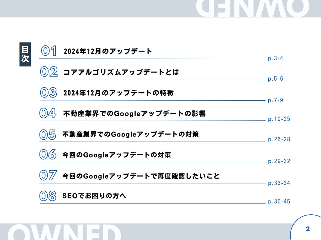 株式会社ベクトル(本社:東京都港区、代表取締役会長兼社長:西江 肇司、東証プライム:6058)の子会社であるOwned株式会社(東京都品川区、代表取締役社長、石井翔、以下「当社」)は、不動産業界向けに「12月のGoogleアップデート完了による分析レポート」の2025年2月版(全45ページ)を無料公開いたしました。