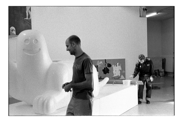 今回は、突然マークが指定した子供の目の高さに並べられた絵の配置を変えたり、仲間のアーティスト、スーザン・チャンチオロとの切り絵ワークショップで、セル画のフレームが1、2枚、あるいはもっともらえることになったり…。