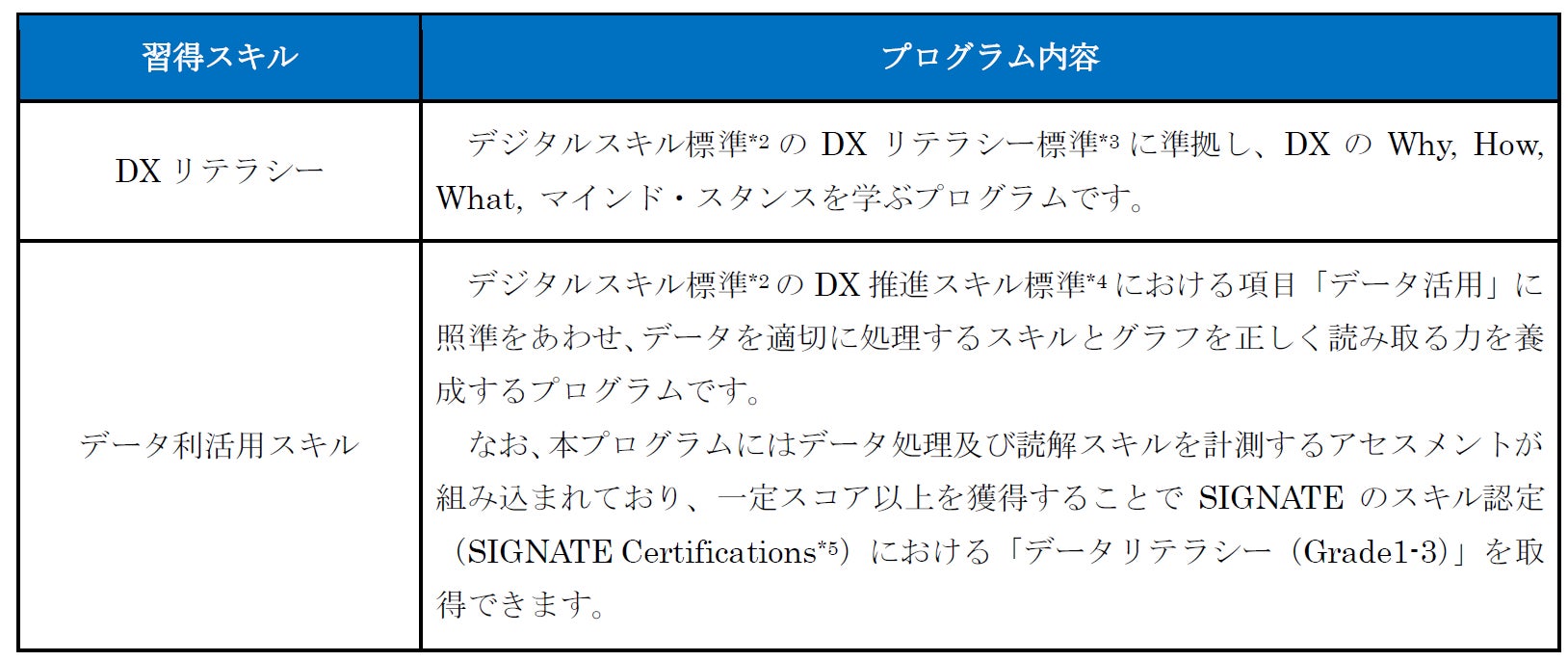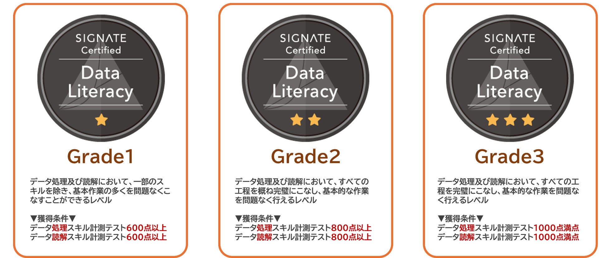 「データリテラシー」は、株式会社SIGNATE(代表取締役社長:齊藤 秀、以下「SIGNATE」)が発行するオープンバッジの一つで、データ処理・読解の実務スキルを認定するものです。経済産業省が主催するデジタル推進人材育成プログラム「マナビDXクエスト」の受講者選抜にも使用されています。