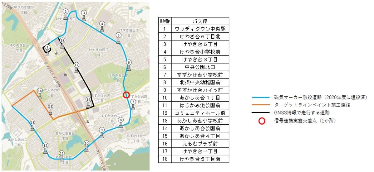 協力会社 | 運行事業者:神姫バス株式会社 車両提供 :先進モビリティ株式会社(いすゞ中型バス エルガミオ) 信号連携 :住友電気工業株式会社 住友電工システムソリューション株式会社 バス停の停車判断自動化検証:NTTコミュニケーションズ株式会社 株式会社NTTドコモ 調査・分析:日本工営株式会社 |