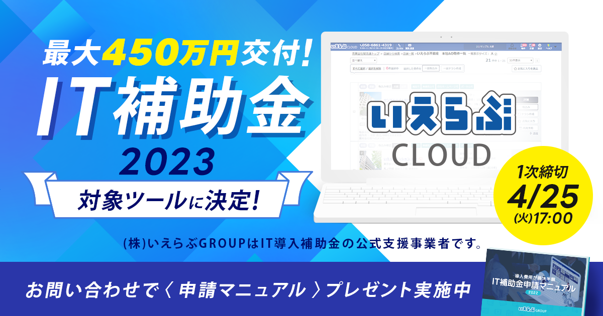 不動産業務支援SaaS「いえらぶCLOUD」が「IT導入補助金2023」の対象ツールに認定
