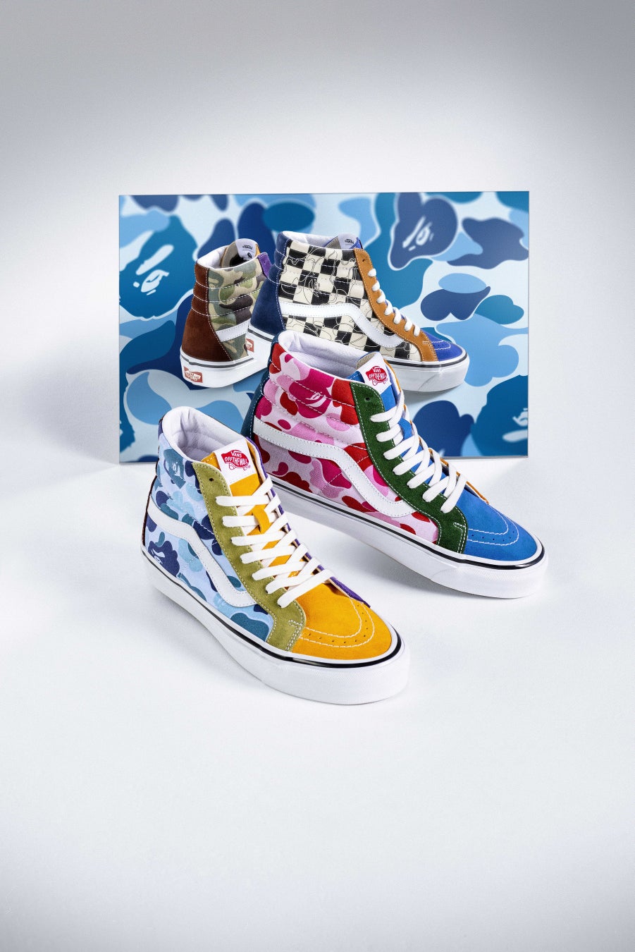 BAPE® x VANSの限定カプセルコレクションは2022年2月26日より、 A BATHING APE®正規取り扱い店舗及びBAPE.COMにて発売。