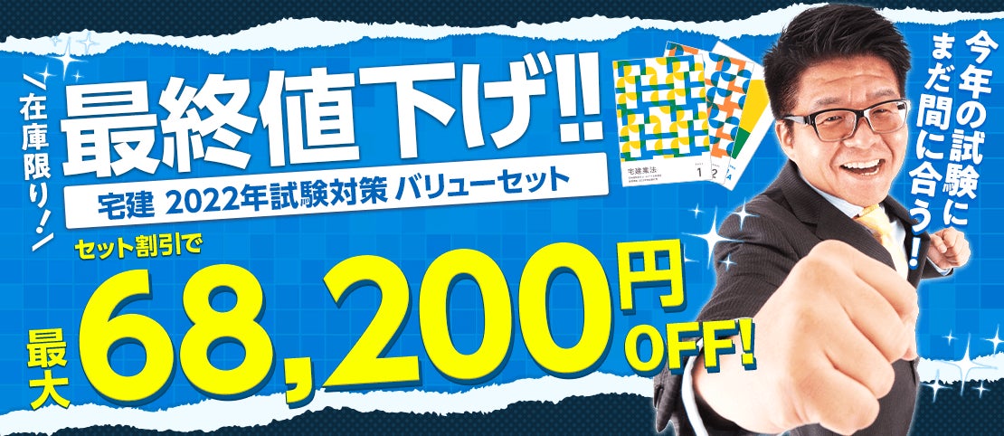 【セット割引で最大68,200円オフ】宅建講座の最終値下げを在庫限りで実施します。今から今年の試験合格を目指せるチャンスです!