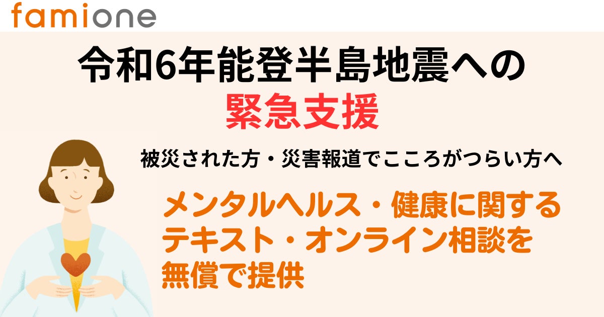 現在も余震が続く中、弊社が今できることをスタッフで考えた結果、弊社が提供しているヘルスケア相談サポート『ファミワン』を被災された方・災害報道を受けてこころがつらい方に対して、無償で提供することを決定しました。