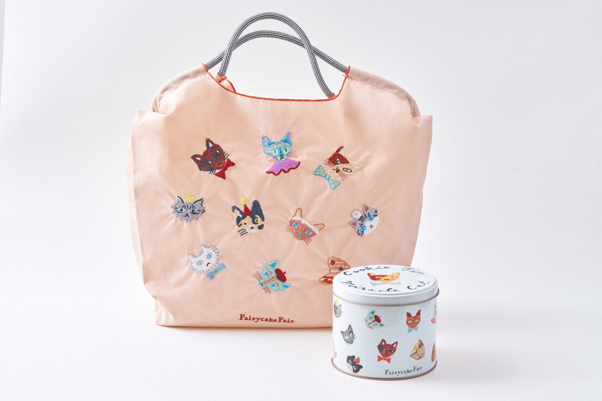 ネコクッキー缶に描かれているユニークで可愛いミラクルキャットたちを刺繍デザインでかわいらしく仕立てられたスペシャルエコバッグです。ご自宅用はもちろん、大切な方への贈り物やバレンタインギフト、訪問先へのお手土産にもぴったりです。