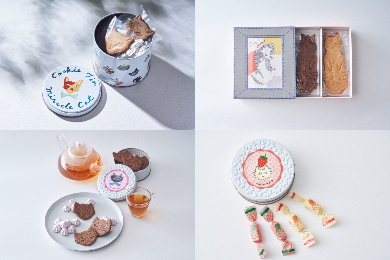 2月22日は「猫の日」。ネコとネコ好きさんのためのこの特別な日に合わせて、フェアリーケーキフェアでは、売上の一部を動物保護団体へ寄付し、保護猫たちの支援活動をサポートする「Miracle Cat Cookie Tin(“神様のいたずら”ネコクッキー缶)」をはじめ、ネコをモチーフにした可愛らしい焼き菓子やチョコレートが勢ぞろいします。