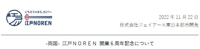 -両国- 江戸NORENは、2022年11月25日、おかげさまをもちまして6周年を迎えることができました。これも皆さまのご愛顧の賜物と心より感謝申し上げます。