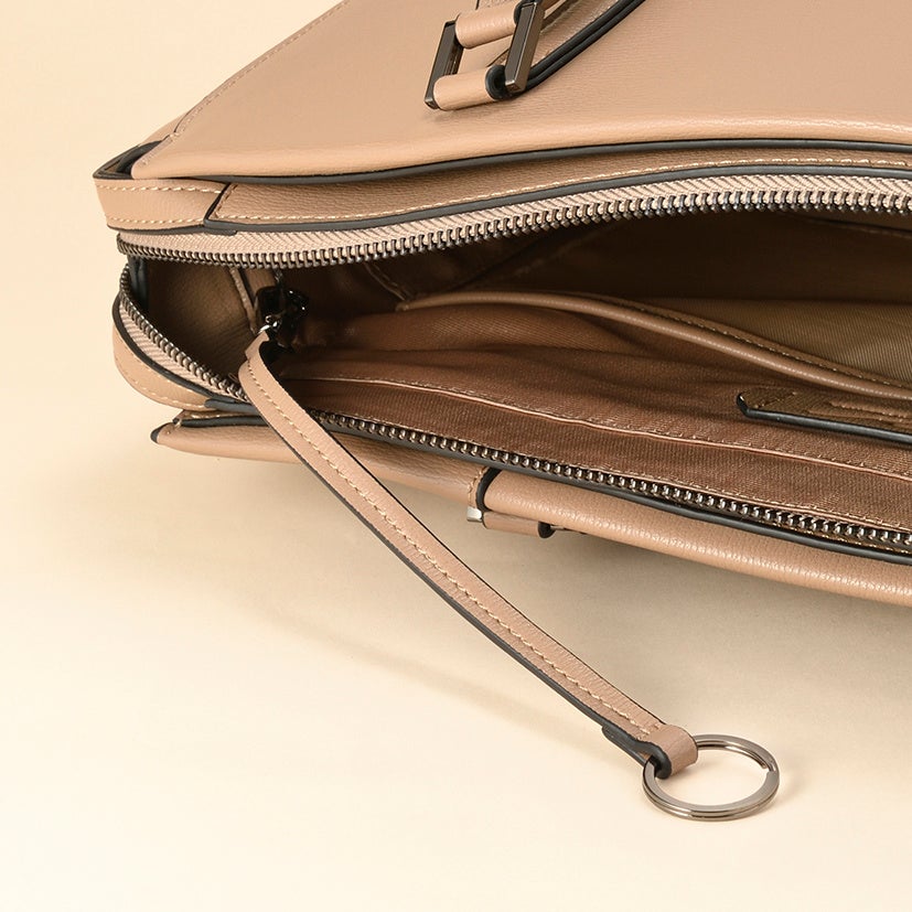 鍵やパスケースなどの小物をフックで繋いでおける「Me Strap」付き。「Me Strap」取り付け金具はバッグ内の複数個所に付いているので、使いやすい位置に取り付けられます。