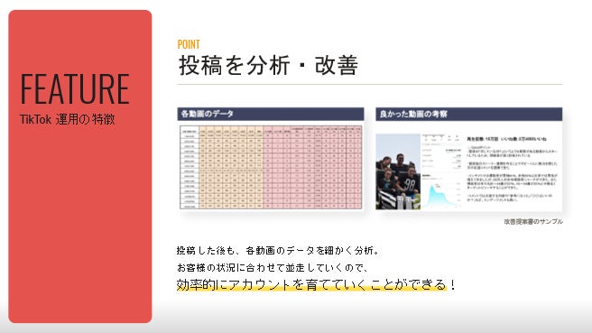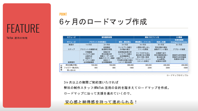採用に特化したTikTokアカウントを運用します。クライアントの要望を受け6か月分のロードマップを作成。動画作成に当たってのプランや実際の撮影など、アカウント運用に関わる全てをVAZで実施!さらに投稿後の分析も行い、より成果が出る形に改善を進めます。