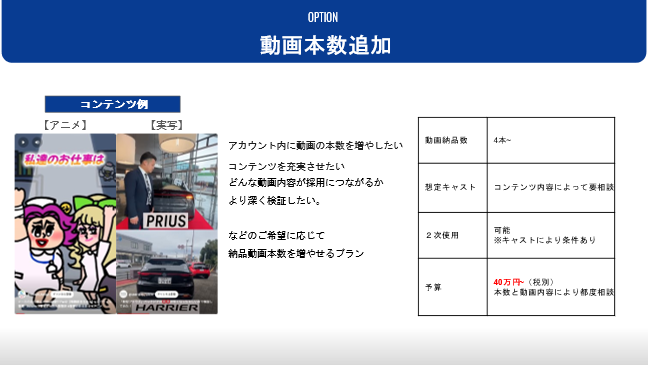 こうしたご相談をいただく中、これまでVAZが培ってきた動画実績を採用領域にも展開することで、クライアントの皆様へのさらなる価値提供に繋げられるのではないか、と検討を重ね、「低コストで」「高いクオリティの」「成果につながる」採用領域に特化したSNS運用プランを開始するに至りました。
