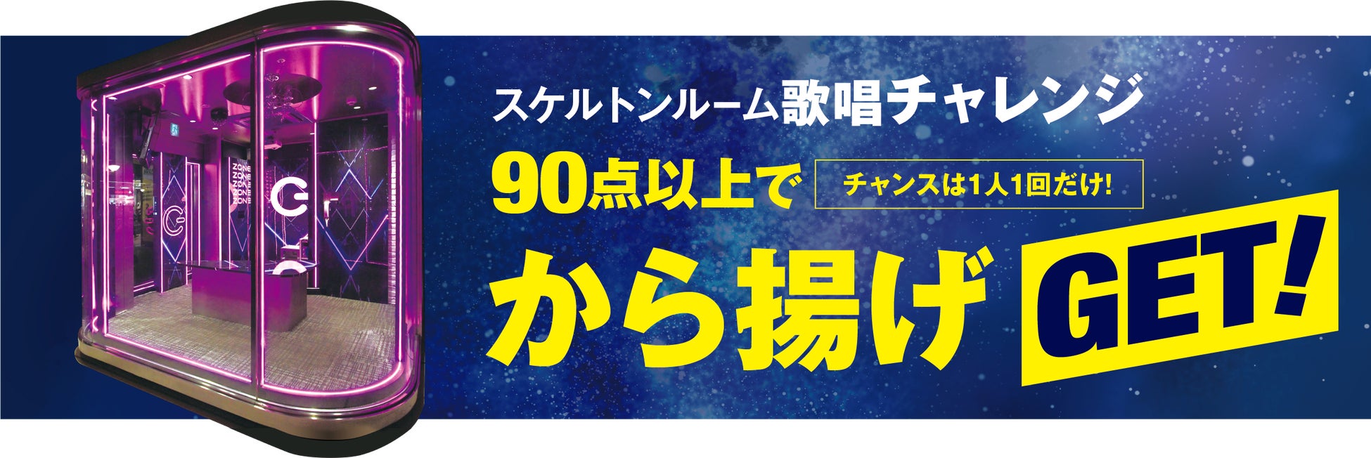 1曲を歌って90点以上を獲得した場合「おかんのやさしいから揚げ」をプレゼントします。