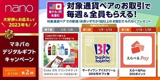 『マネパのデジタルギフトキャンペーン』大好評につき2023も実施中!取引1回でもれなくプレゼント!
